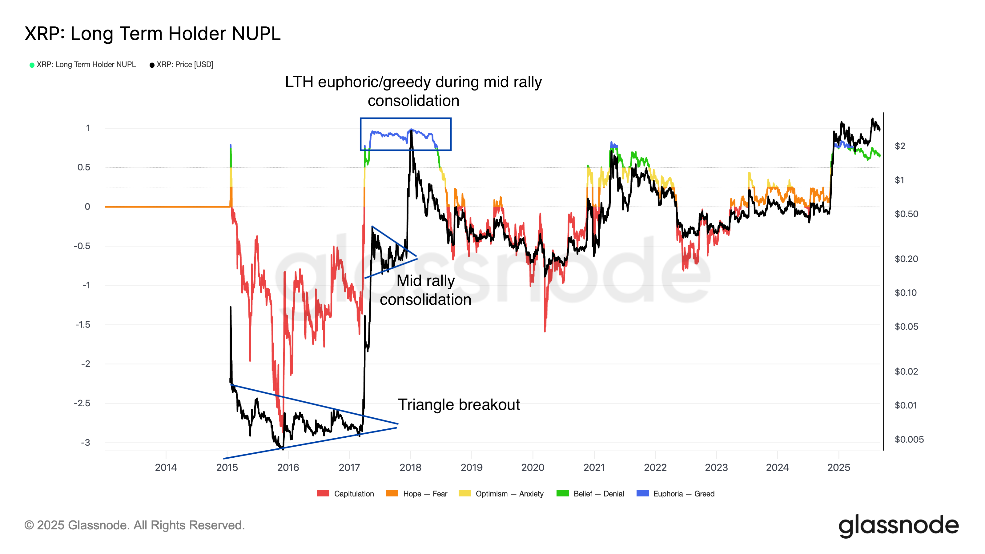 2025'te durum farklı görünüyor. XRP güçlü bir şekilde artmış olsa da, kibar veriler uzun vadeli sahiplerin zaten coşku – kalibre – sakinlerden geçtiğini göstermektedir.