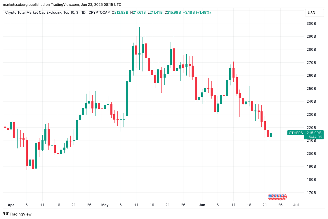 İlk 10 kripto parası dışında, Altcoin'in toplam piyasa değeri 22 Haziran'da 202.16 milyar dolara düştü. 18 Nisan'dan itibaren en düşük seviye ..