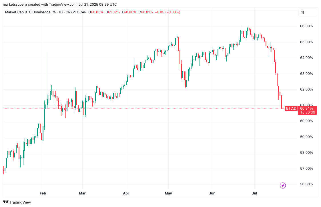 Bitcoin'in alanı çöktüğünde, Altseason'un başlattığı ifadeler var.