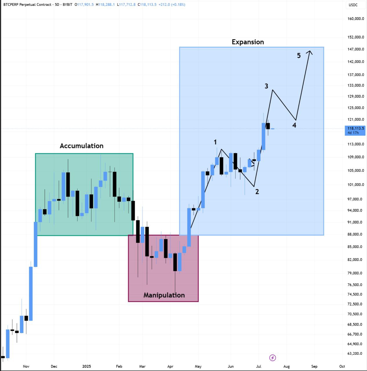 “Bu BTC'yi 130.000 doların üzerine getirecek ve yerel zirveyi gösterecek. Daha sonra dördüncü çeyrekte son bir artış olacak ve BTC 160.000 dolara çıkacak”.