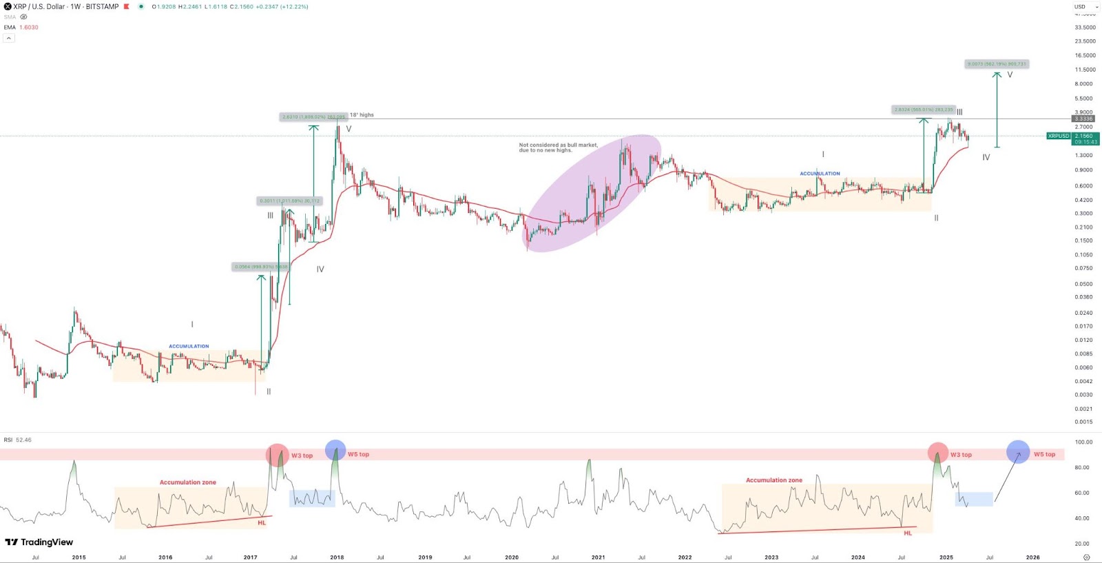 Mevcut döngü kendini tekrarlarsa, Maelius XRP’nin yıl sonuna doğru 10 dolarlık bir hedefe ulaşabileceğini tahmin ediyor.