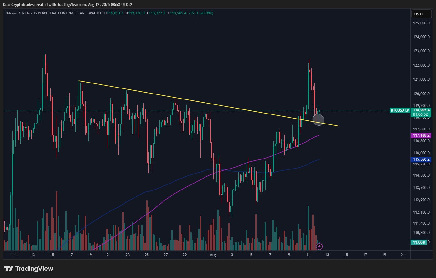 BTC/USDT Sürekli 4 saat grafiği takas. Kaynak: Daan kripto esnaf/x