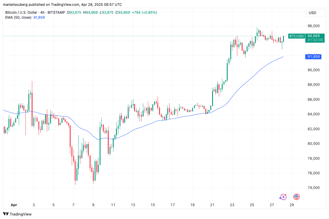 Aynı kapanış, Cotelegraph Markets Pro ve TradingView'in 93.500 $ -DOLLAR -YAZILIK seviyesinin hemen üzerinde yükselişi veya talimatlarıydı.