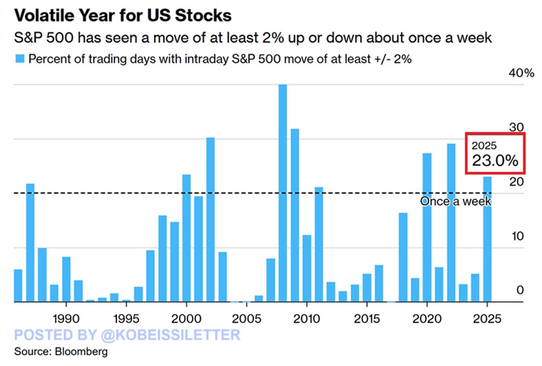 “Bu, tarihin en değişken yıllarından biriydi: S&P 500, haftada en az bir kez her iki yönde % 2 hareket gördü, S&P 500 tarihin en değişken yıllarından biriydi: S&P 500, şimdiye kadar.