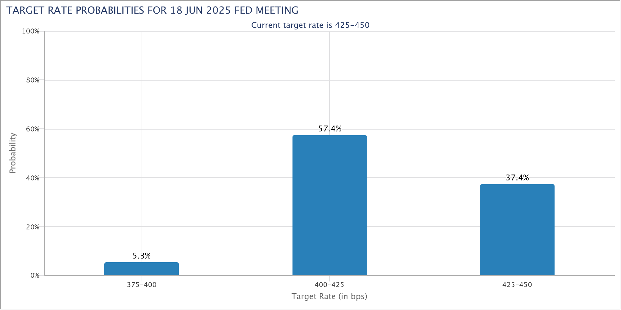 CME Grubu Fedwatch aracının verileri, Haziran ayında Federal Açık Piyasa Komitesi (FOMC) toplantısından neler çıkacağına dair çeşitli görüşler olduğunu göstermektedir.