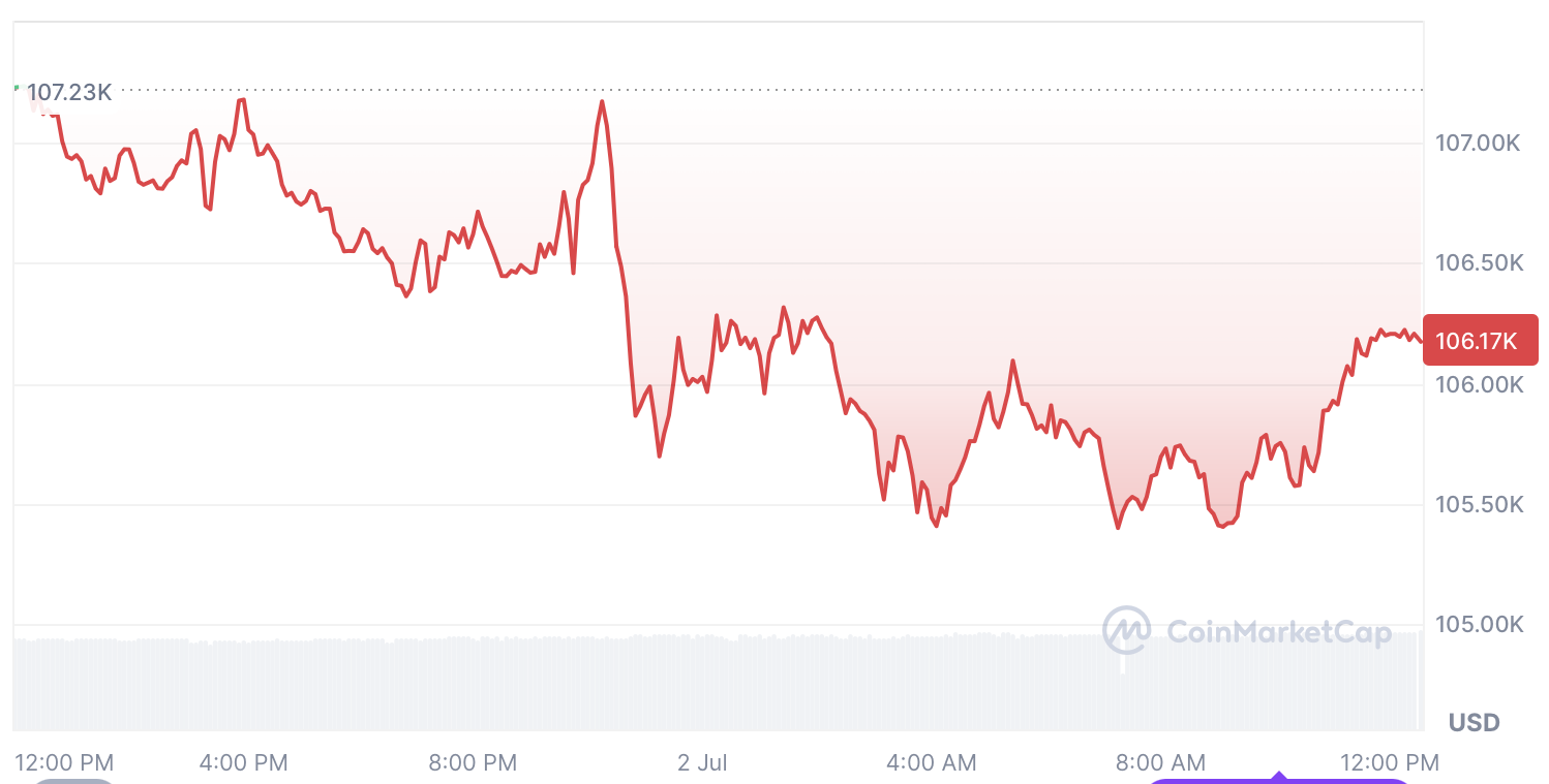 Bitcoin, bu haberi hazırlarken 106.170 dolar ile karıştırılıyor. Kaynak: Coinmarketcap