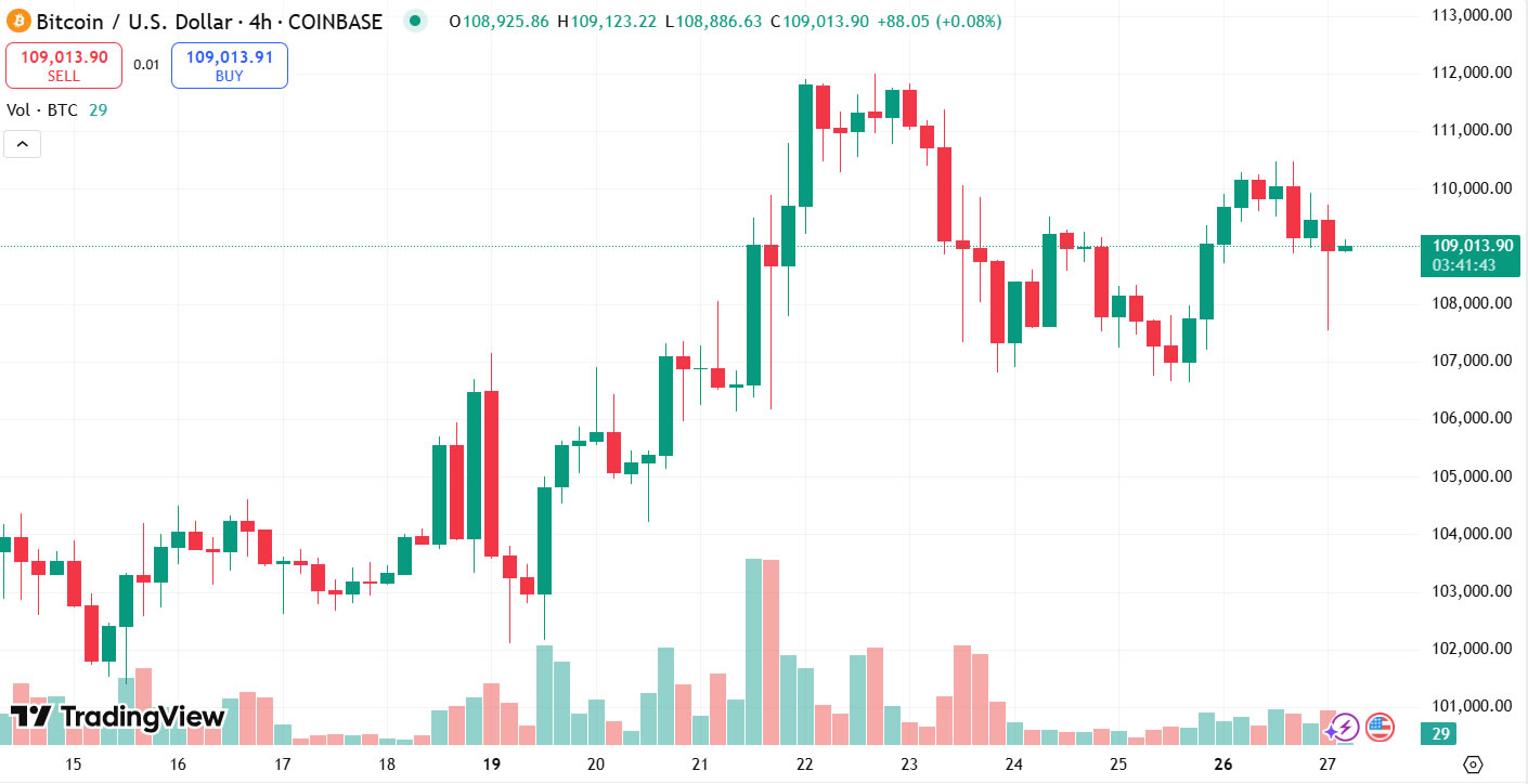 Bitcoin, bu haberde 108.700 doların hemen altında Coinbase ile değiştirildi. TradingView verilerine göre, 107.550 dolara düştükten sonra hafif bir iyileşme gerçekleşti.