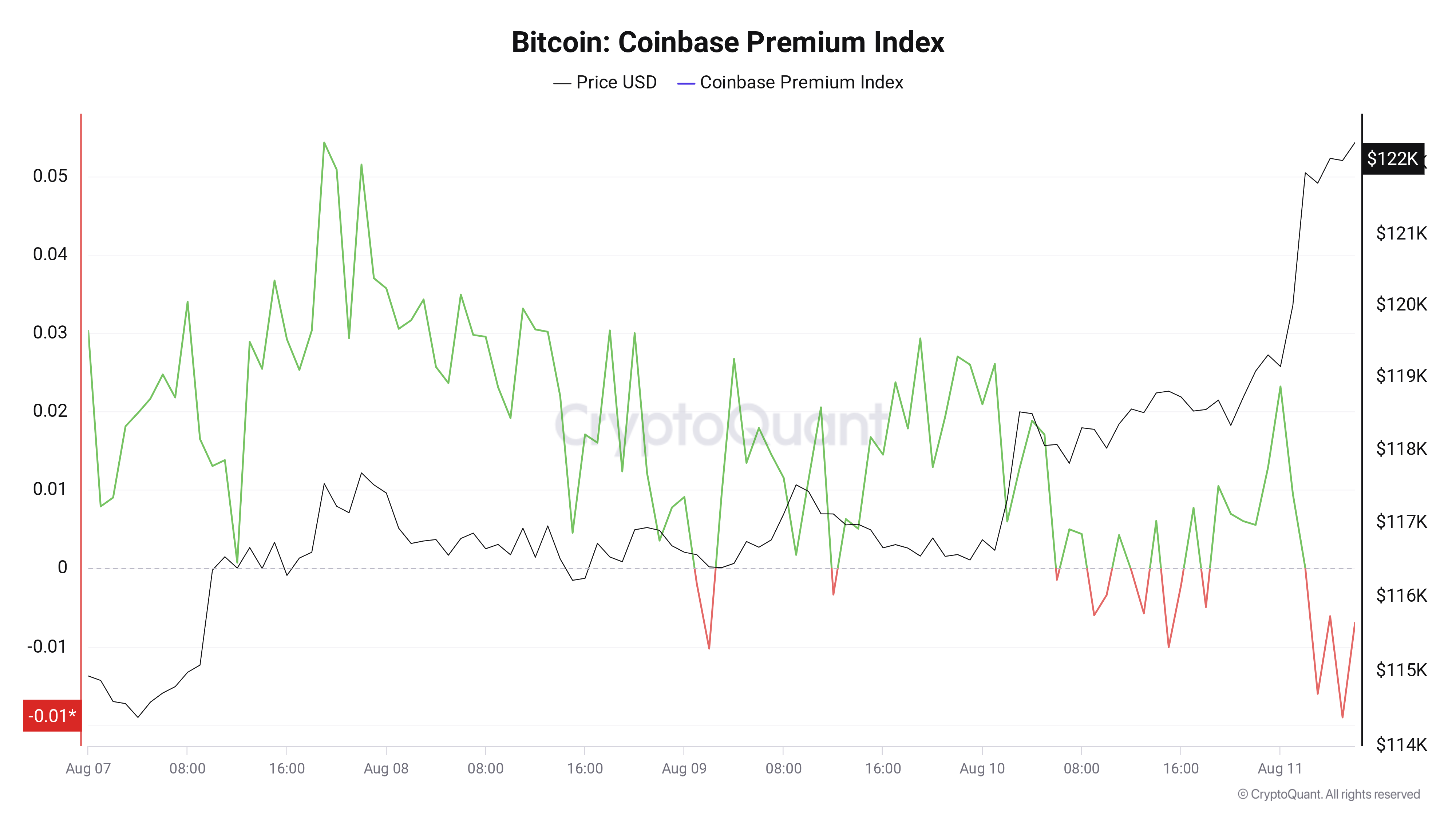 “Bugün fiyat 118.000 dolardan 122.000 dolardan arttı, yatırımcılar yüklendi. Ancak, premium Coinbase endeksi hemen kırmızıya dönüştü.”
