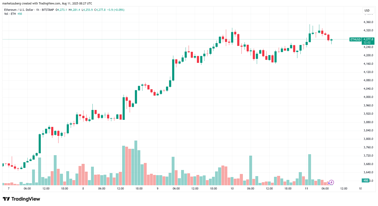 Cotelegraph tarafından bildirildiği gibi, ETH/USD hafta sonu sonundan bu yana en yüksek seviyelere ulaştı.