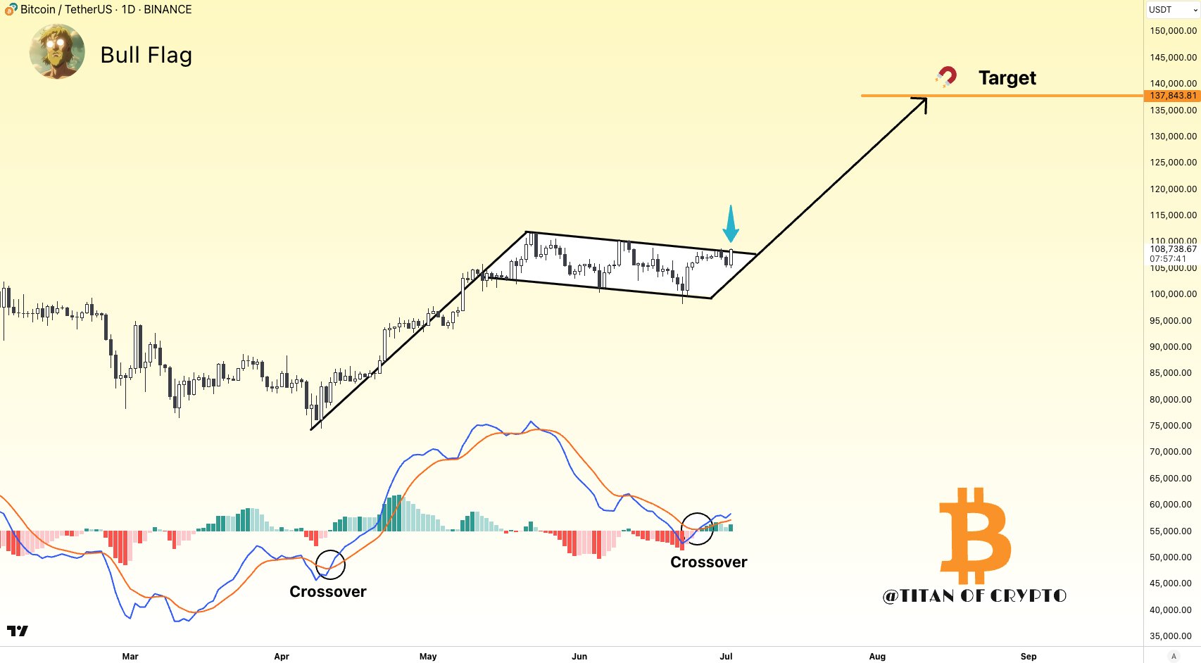 Kripto Teknik Analisti Titan, günlük bir grafikte onaylanan bir MACD Boğa haçına dikkat çekti ve bunun güçlü bir sinyal sinyali olduğunu söyledi. Titan ayrıca BTC'nin bir boğa eğitiminden çıkmaya çalıştığını ve eğer bu çıkış başarılı olursa, fiyatın mıknatısların etkisiyle fiyatı 137.000 dolara çekebileceğini söyledi. “