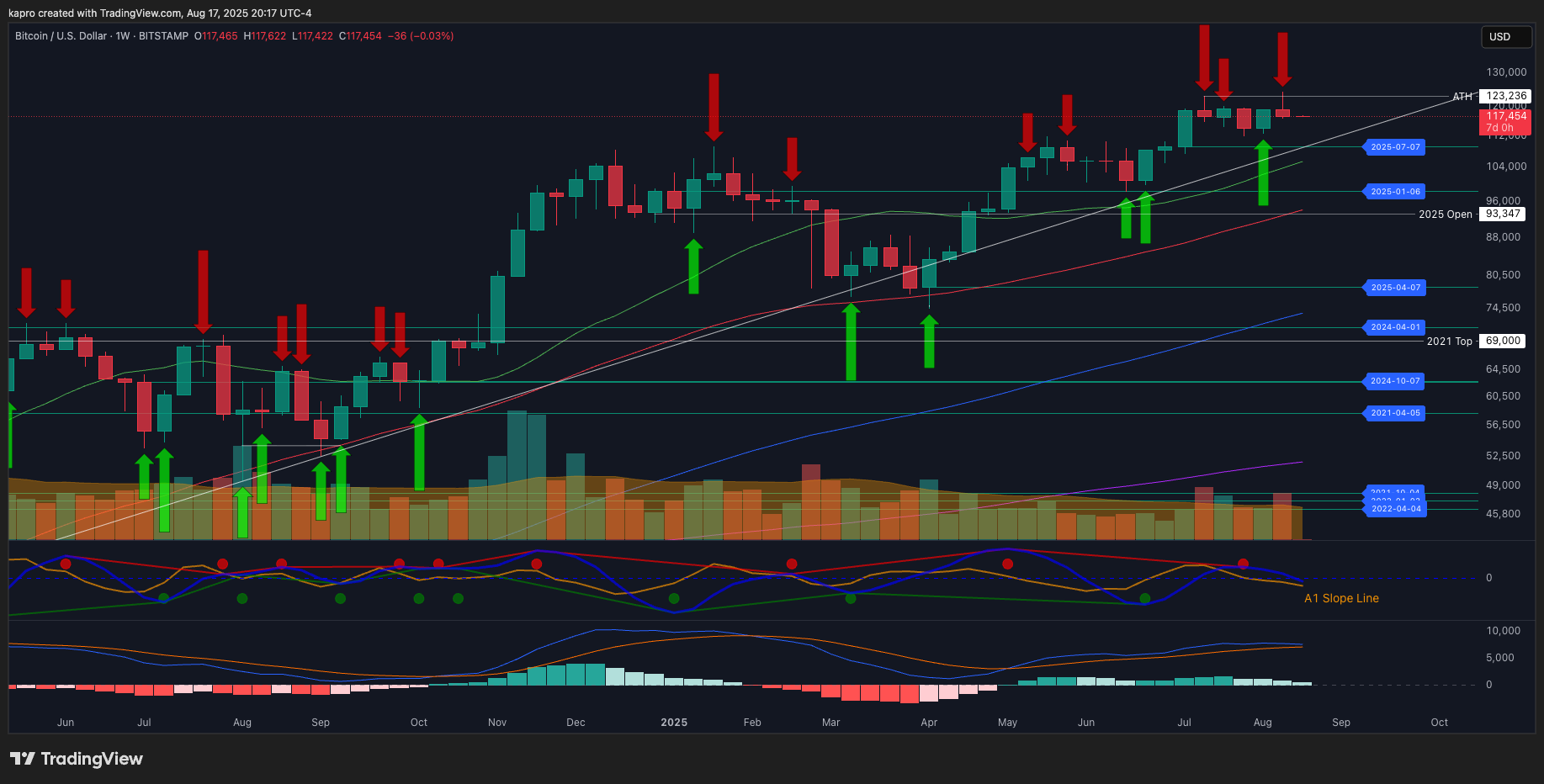 BTC/USD bir haftalık grafikler. Kaynak: Rek Capital/X