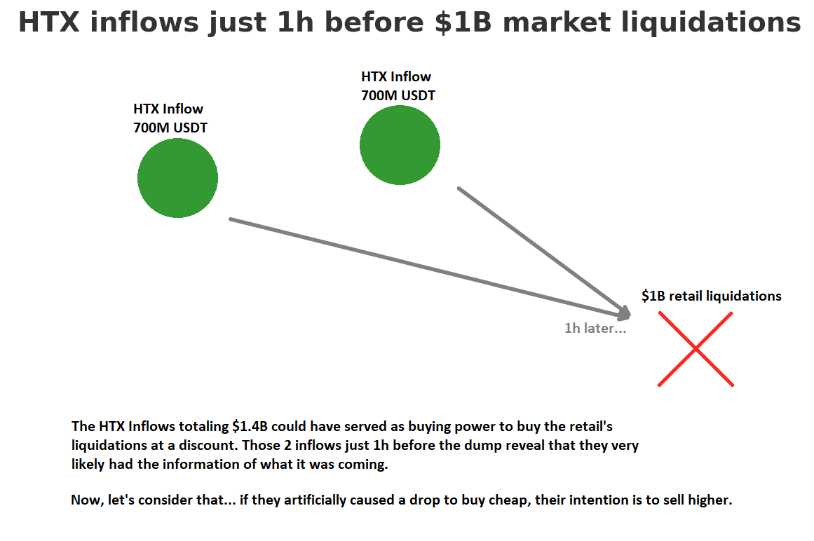 “Bitcoin yeni bir CA yaptı, ancak daha sonra manipüle edilmiş bir organize hareket fiyatı azalttı ve 24 saat içinde 1 milyar dolarlık tasfiye neden oldu. Bireysel yatırımcılar aynı anda durduruldu ve ödendi … bir el tüm bu tasfiye memurları satın aldı.”