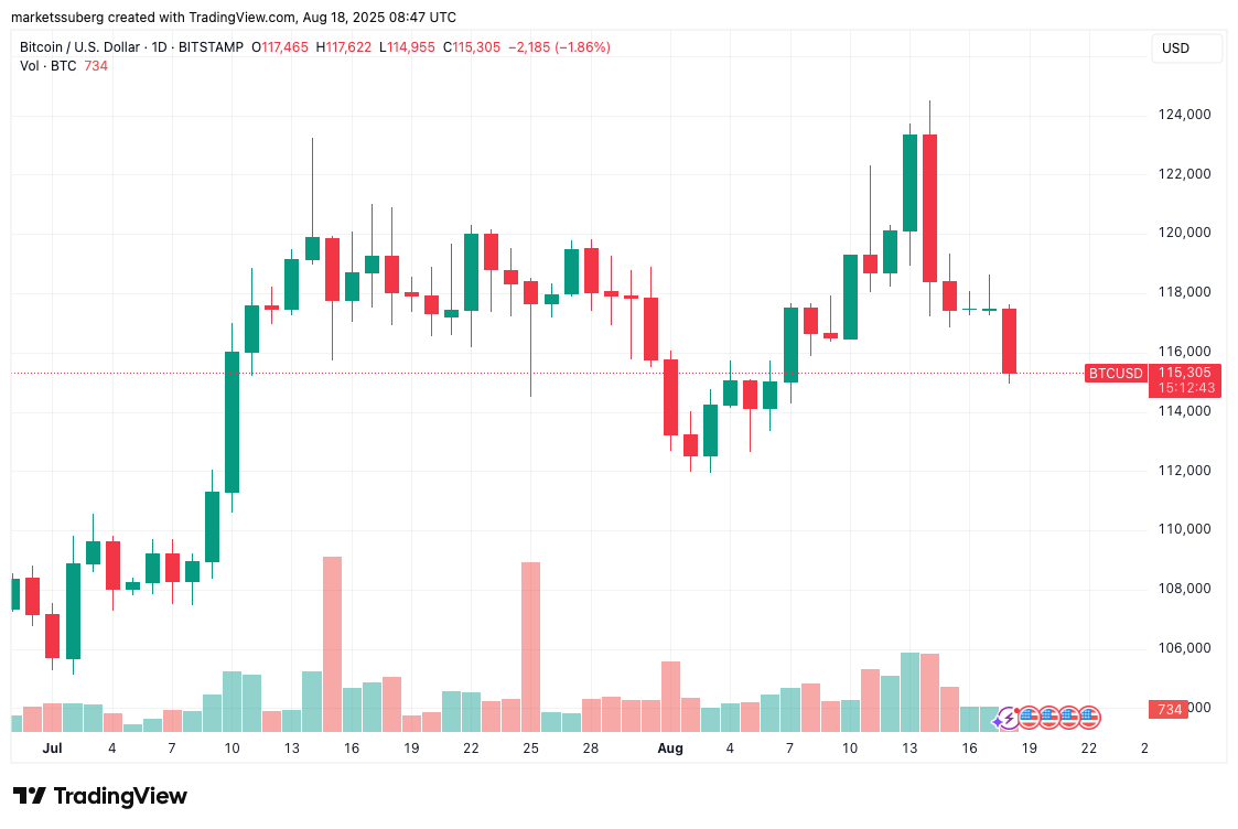 BTC/USD bir grafik verisi ve günlük ciltler. Kaynak: Cointlegraph/TradingView