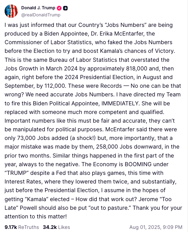 “Powell geri çekilmeli, gerçekte 1 Ağustos'ta sosyal olarak yazdı.