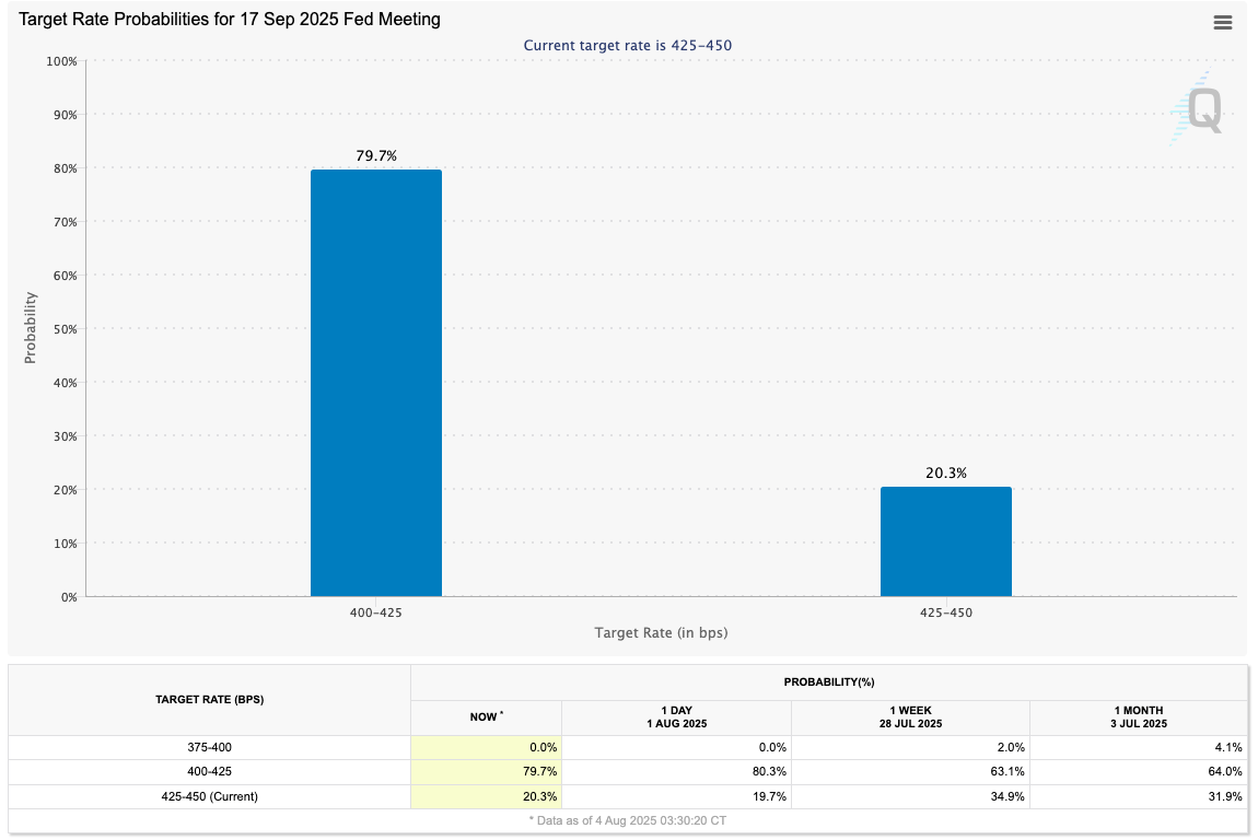 Bu, piyasa beklentilerinde dalgalanmalara yol açtı, ancak CME Grubu Fedwatch aracına göre, şimdi ilk yüzde 0,25 azalmanın Eylül ayında planlandığı yeniden oluşturuldu.