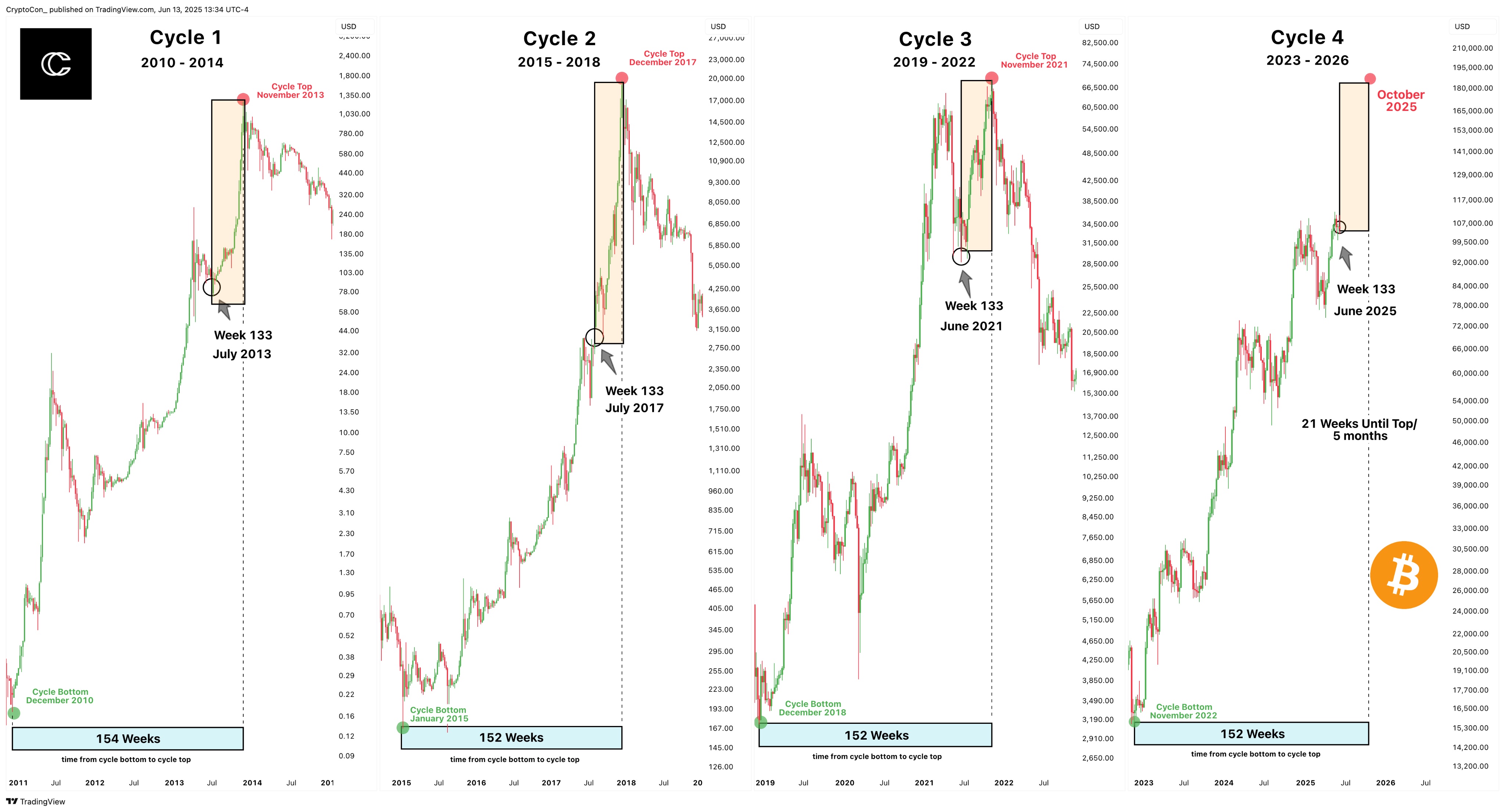 Bitcoin Boğa Pazarı'nın karşılaştırılması. Kaynak: Cryptocon/x.