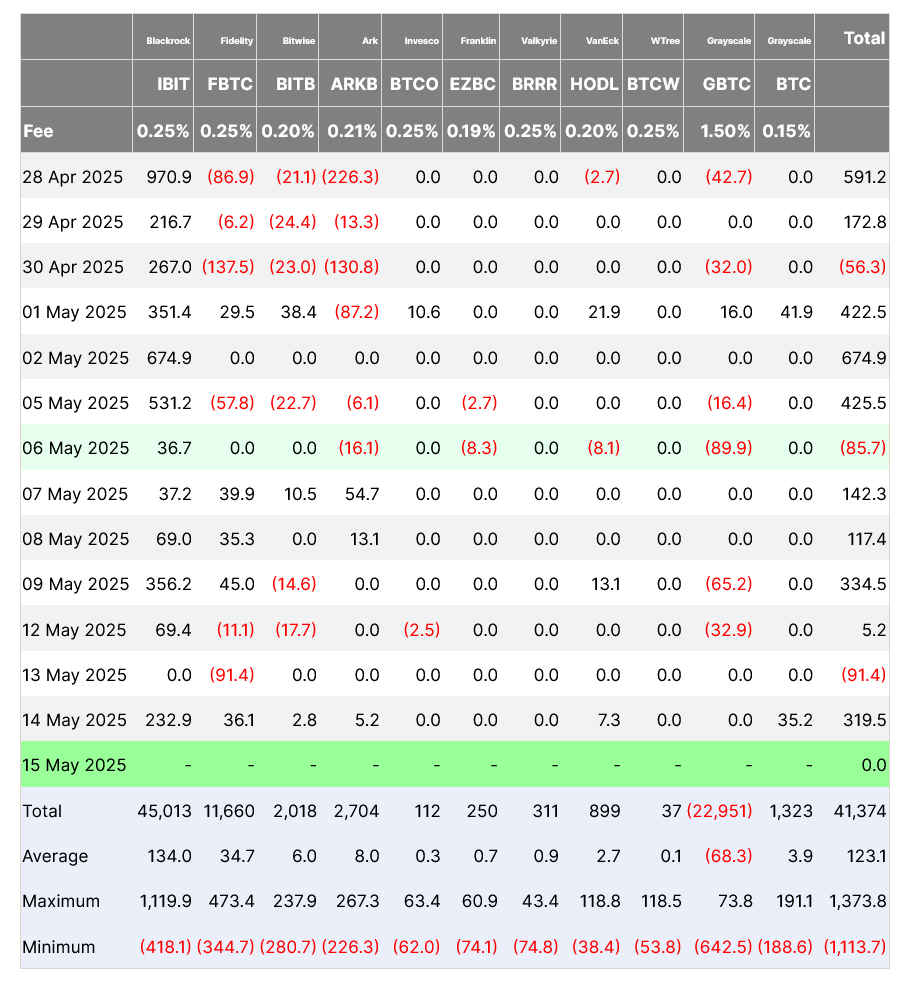 20 günlük Ibit'in etkileyici net serisi, 13 Mayıs'ta “0” kaydedildiğinde sona erdi. BlackRock tarafından piyasaya sürülen Bitcoin ürünü, 9 Nisan'dan itibaren bir sürüm görmedi (beş haftadan fazla).