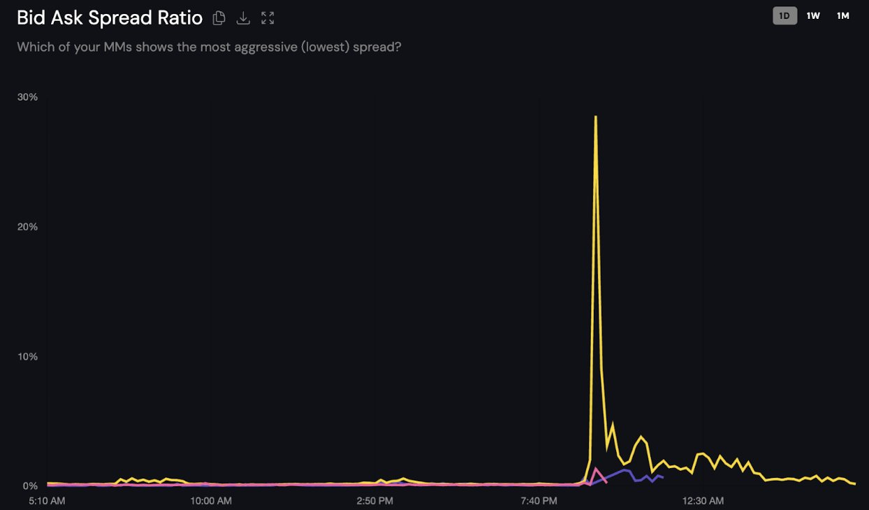 Coinwatch Pazar günü X'te yayınlanan bir gönderide, “Tokenin fiyatı düştüğünde, her iki piyasa yapıcı da sipariş defterlerinden her şeyi geri çekti. Bir buçuk saat sonra Blue, botlarını yeniden açtı ve daha önce olduğu gibi aynı likiditeyi sağlamaya geri döndü. Bu arada Turkuaz defterlerde göründü ancak çok az aktifti” dedi.