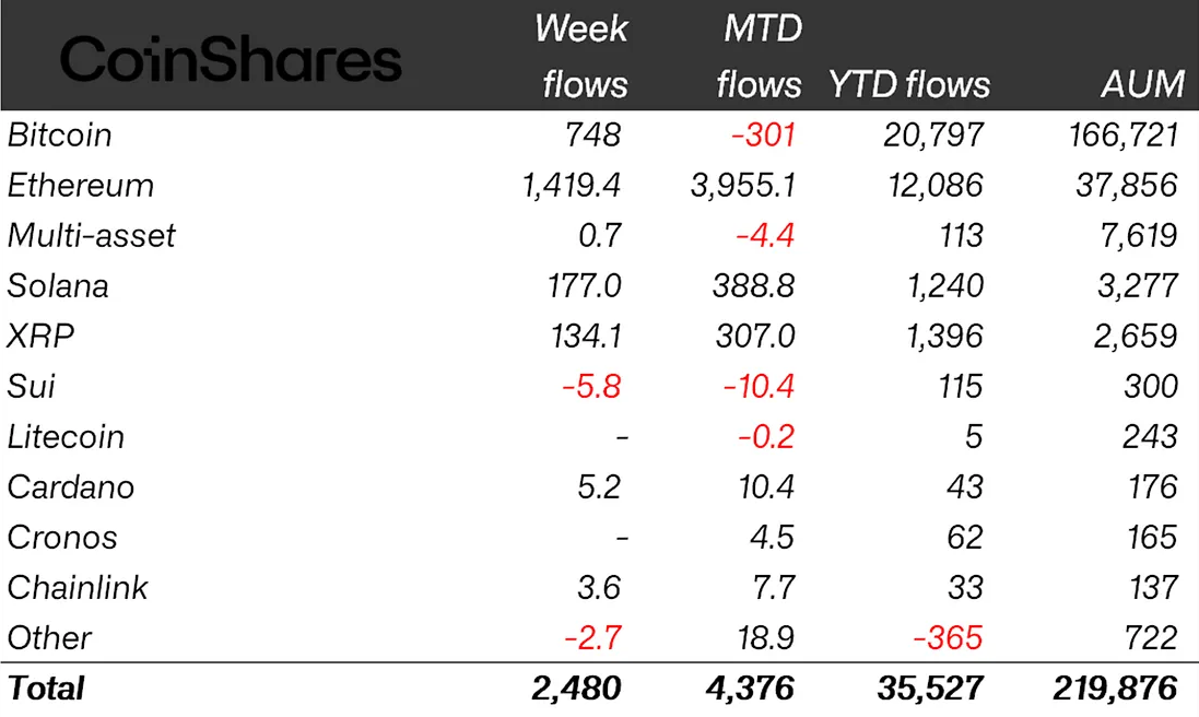 Bu arada, Coinshares'e göre Solana (solda) ve XRP (XRP), ABD ETF'nin lansmanlarındaki iyimserlikten yararlanmaya devam etti ve sırasıyla 177 milyon dolar ve 134 milyon dolar kaydetti.