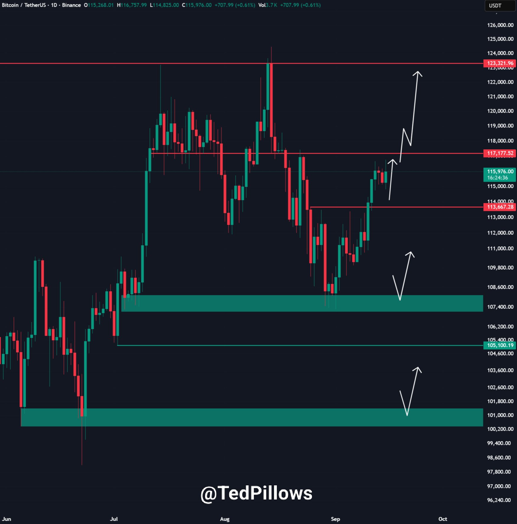 “BTC, şifreleme yatırımcısındaki ve girişimci TED yastıklarındaki son X paylaşımında 117.000-117.200 dolar reddedildi. Bu, Bitcoin'in geri kazanması gereken tek ana seviyedir.