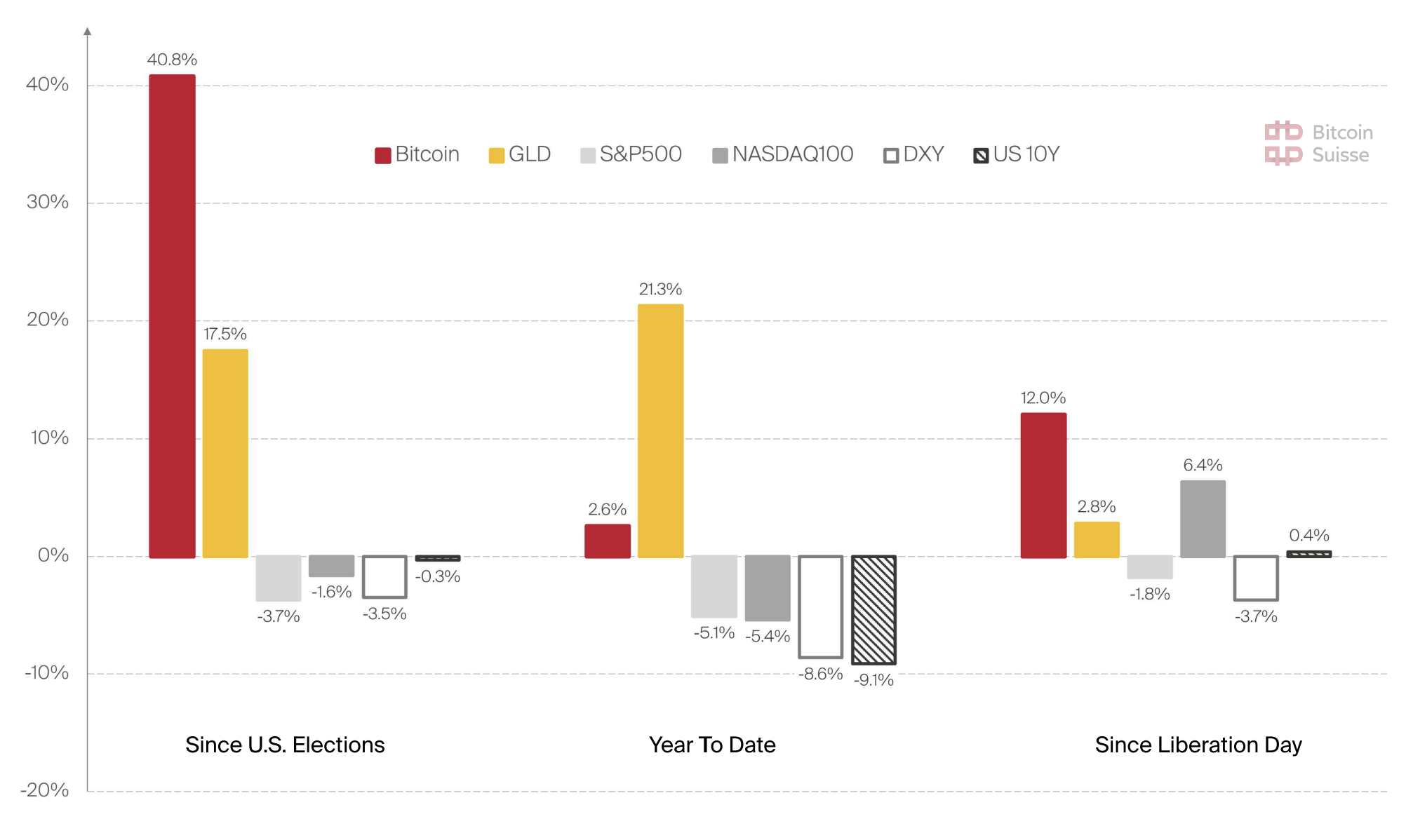 2025'te Gold, yüzde 30,33'lük fiyat artışı ile Bitcoin performansını yüzde 3,84 bıraktı. Analize göre, bitcoin likidite arttığı ve fiat para birimlerinin “yüksek beta performansı” olarak zayıfladığı dönemlerde daha iyi sonuçlar elde etti.