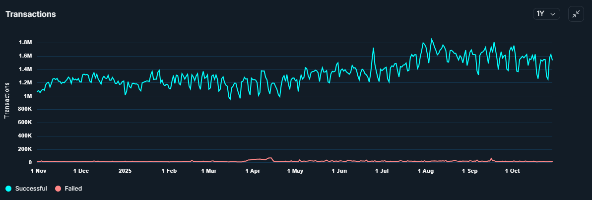 Ethereum toplam işlemleri, 1 yıllık grafik. Kaynak: app.Nansen.ai