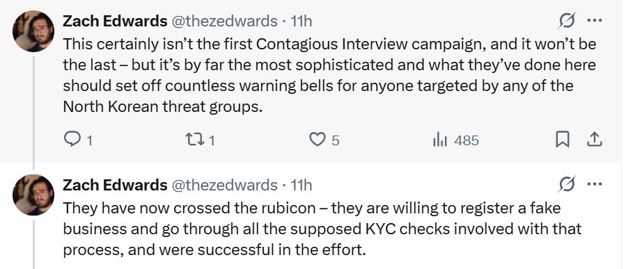 Kuzey Koreli hackerlarla ilgili hacker kuruluşu Lazzaro'nun bir alt grubu, ABD'de iki tanesi ABD'de, şüphesiz kullanıcılara kötü amaçlı yazılım (kötü amaçlı yazılım) göndermek üzere üç senaryo kurdu.