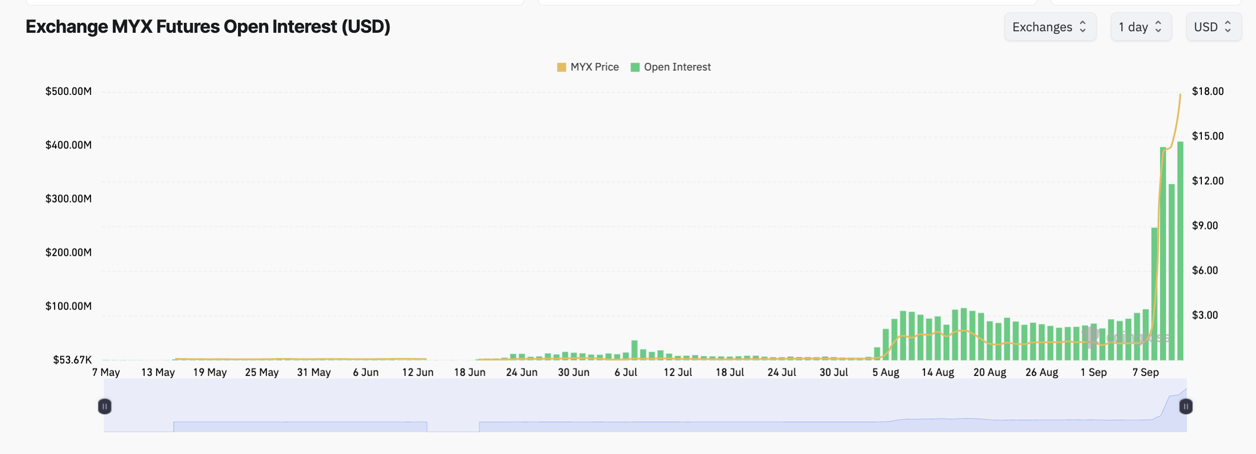 Myx Finance (MYX) haftada yaklaşık yüzde 1.400 patladı ve Çarşamba günü 18.42 $ 'lık tüm zamanların en yüksek seviyesine yükseldi.