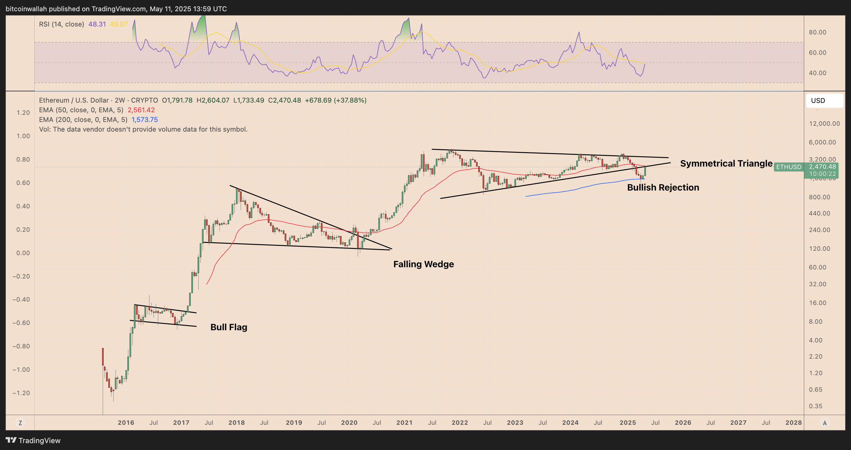 ETH/USD iki haftalık bir fiyat grafiğidir. Kaynak: TradingView