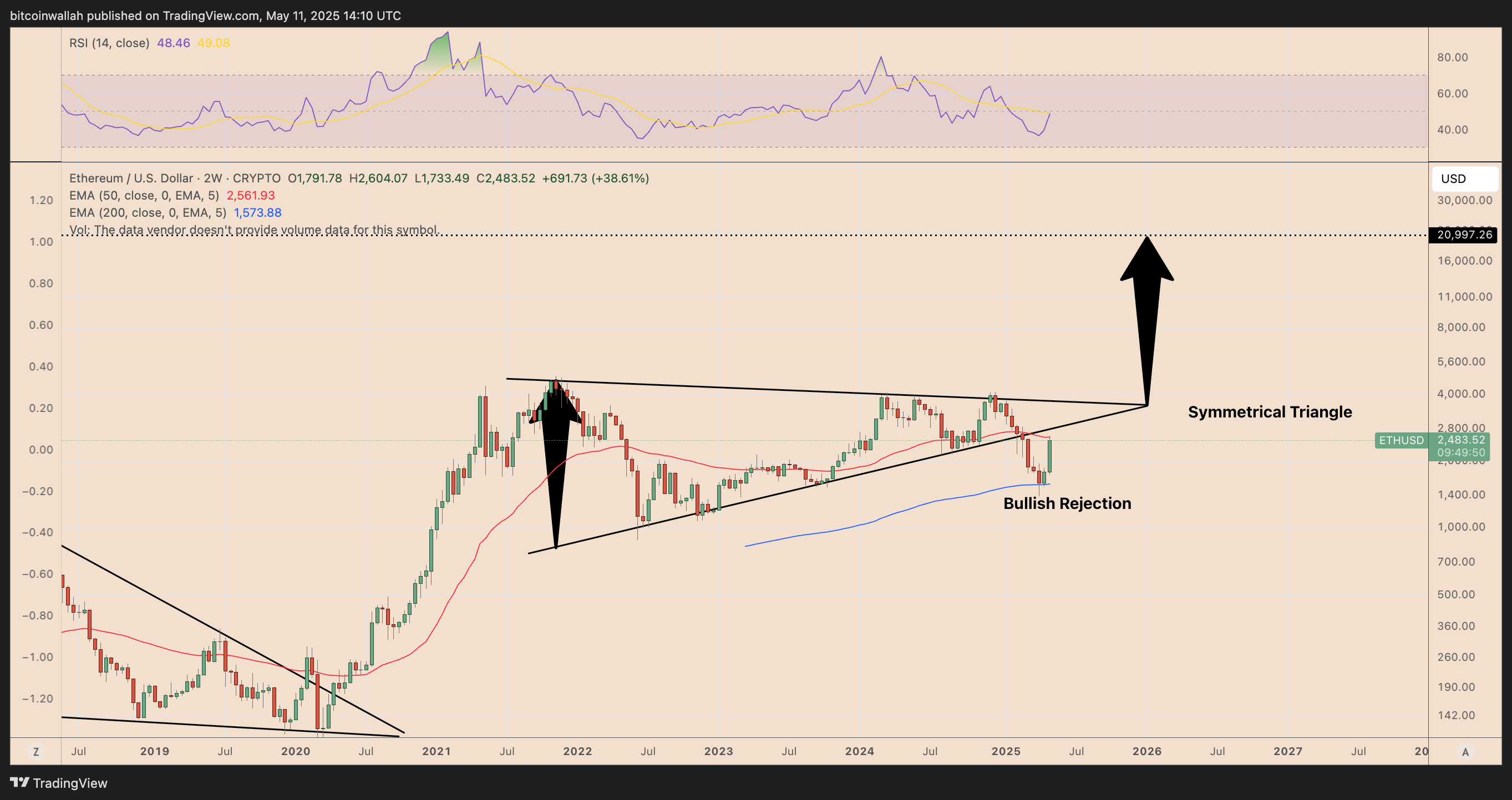 Mayıs 2025'ten itibaren ETH, bu eğrinin alt sınırından yaklaşık 2.100 $ 'lık iyileşti. Bu seviye, daha önce büyük artışları tetikleyen tarihsel olarak önemli bir destek alanını temsil eder.
