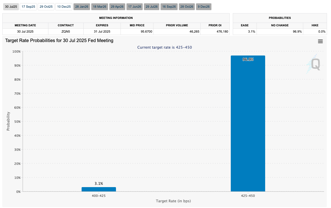 Temmuz ayının FOMC toplantısı için hedef faiz oranı (ekran görüntüsü) olasılığı. Kaynak: CME Grubu