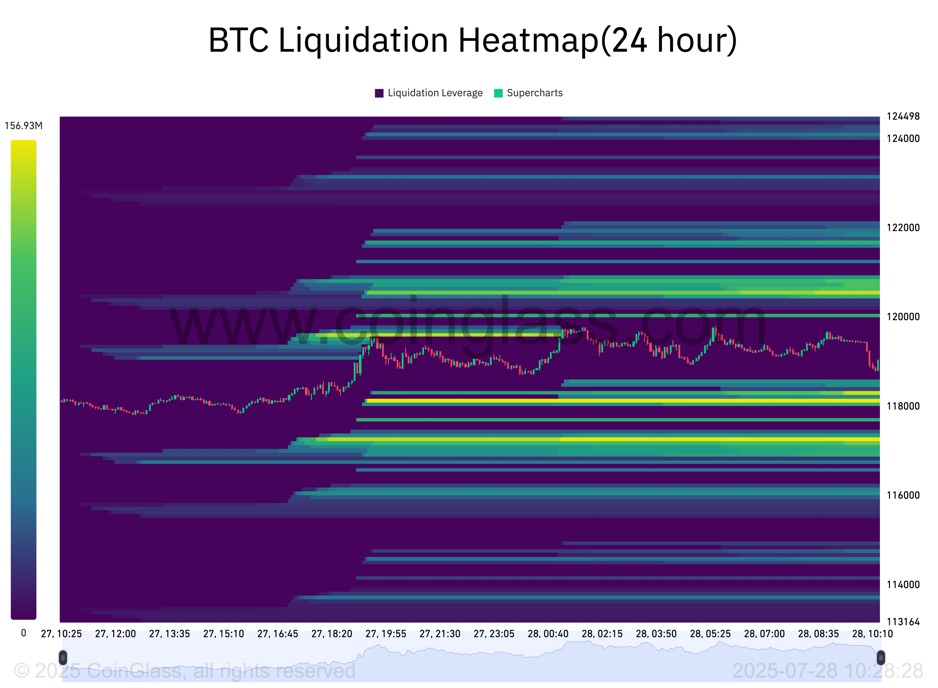 Cotelegraph Markets Pro ve TradingView verilerine göre, BTC/USD yaklaşık 119.000 dolar korumayı başardı ve bu da bir sonraki hareket için pazar katılımcılarına güven verdi.