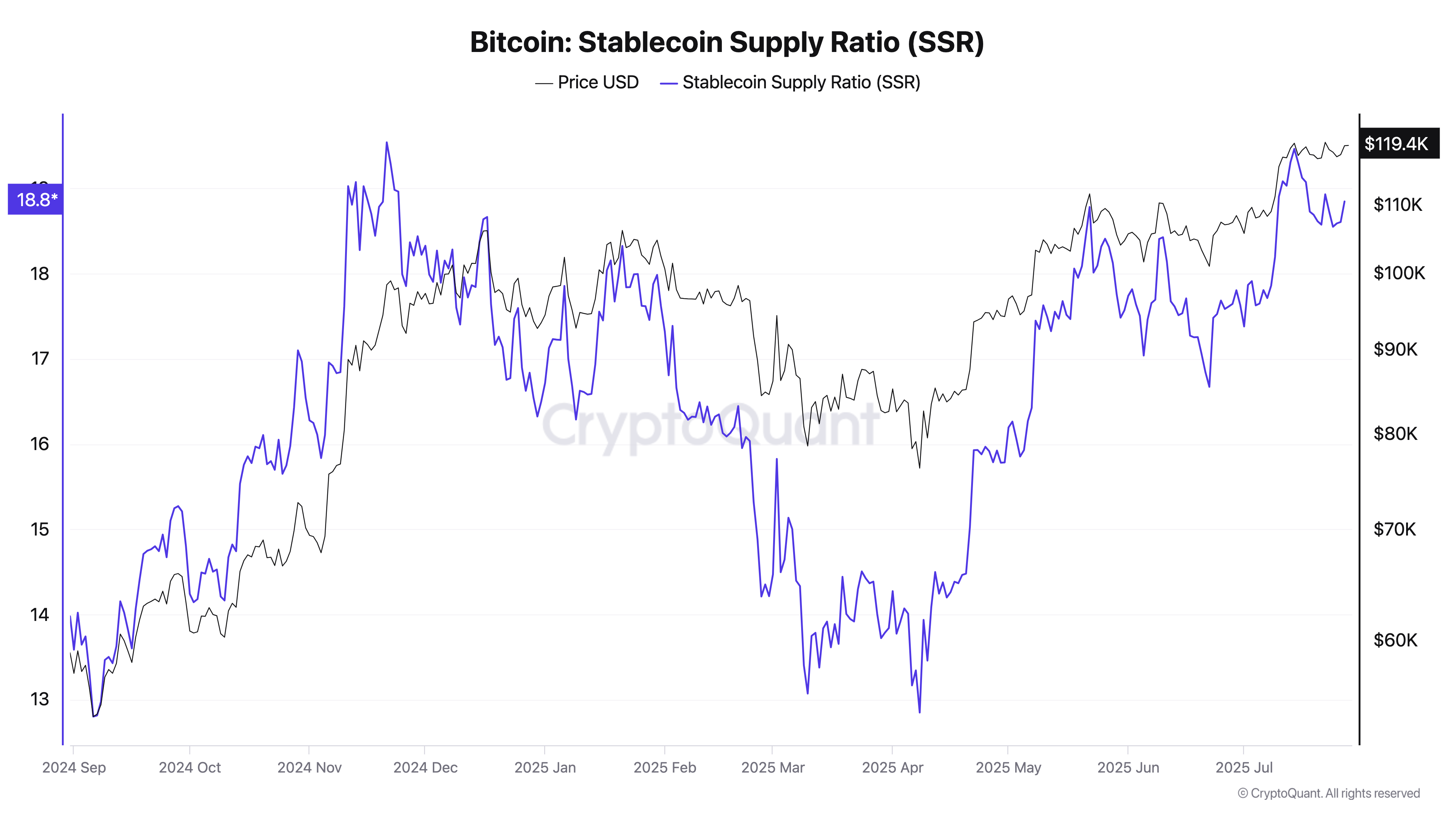 StableCoin besleme oranı (SSR) BTC/USD ile artar. Bu, StableCoin'in likiditesinin piyasadaki yatırımlar için uygun olabileceğini göstermektedir.