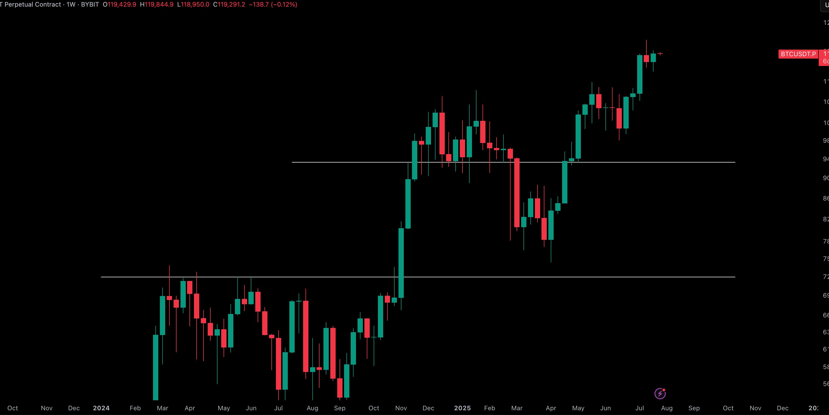 Sürekli BTC/USDT 1 haftalık BTC/USDT sözleşmesi. Kaynak: Kripto Tony/X.