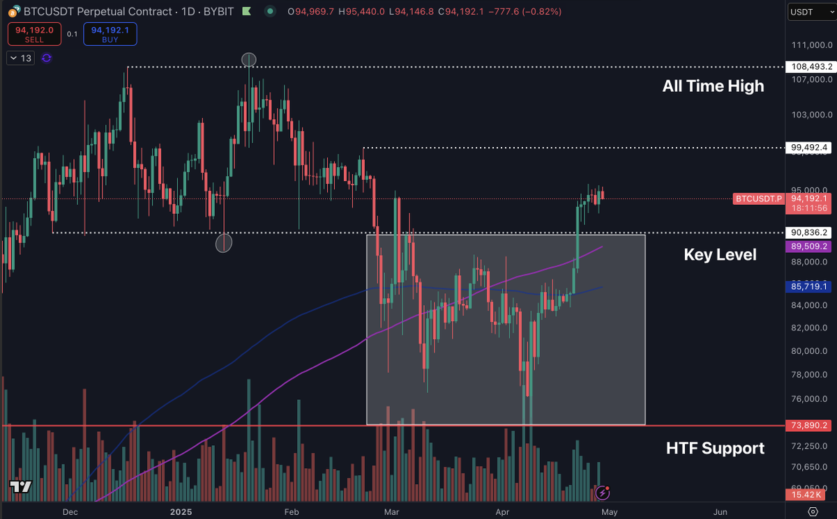 Cotelegraph tarafından daha önce bildirildiği gibi, 95.000 dolar seviyesi, boğaların iyileşmeyi aşması gereken kritik bir direnç seviyesidir.